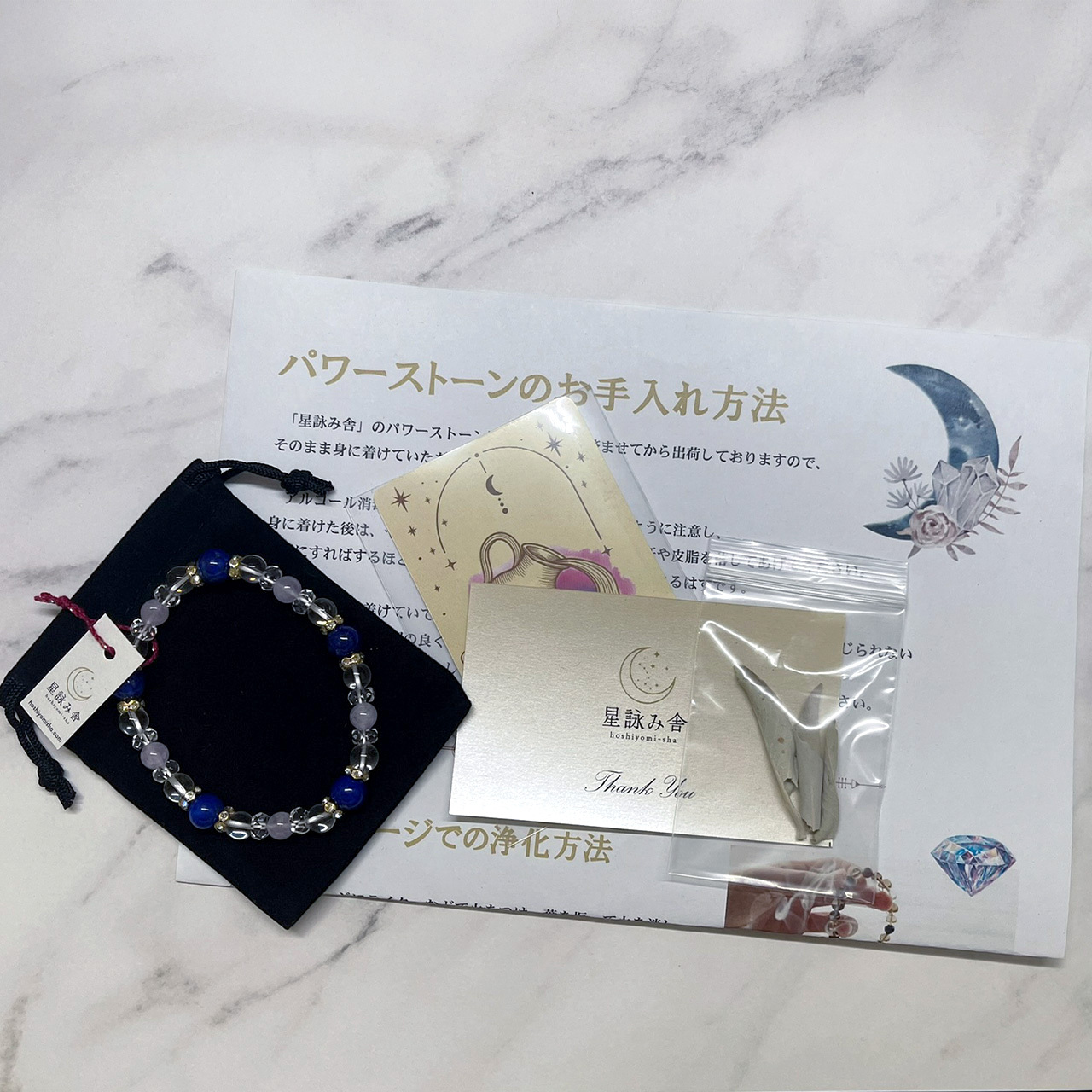 星詠み舎のすべてのアイテムは、発送直前にホワイトセージによる浄化を行った後、梱包しておりますので届いたその日から、安心して身に着けていただけます。